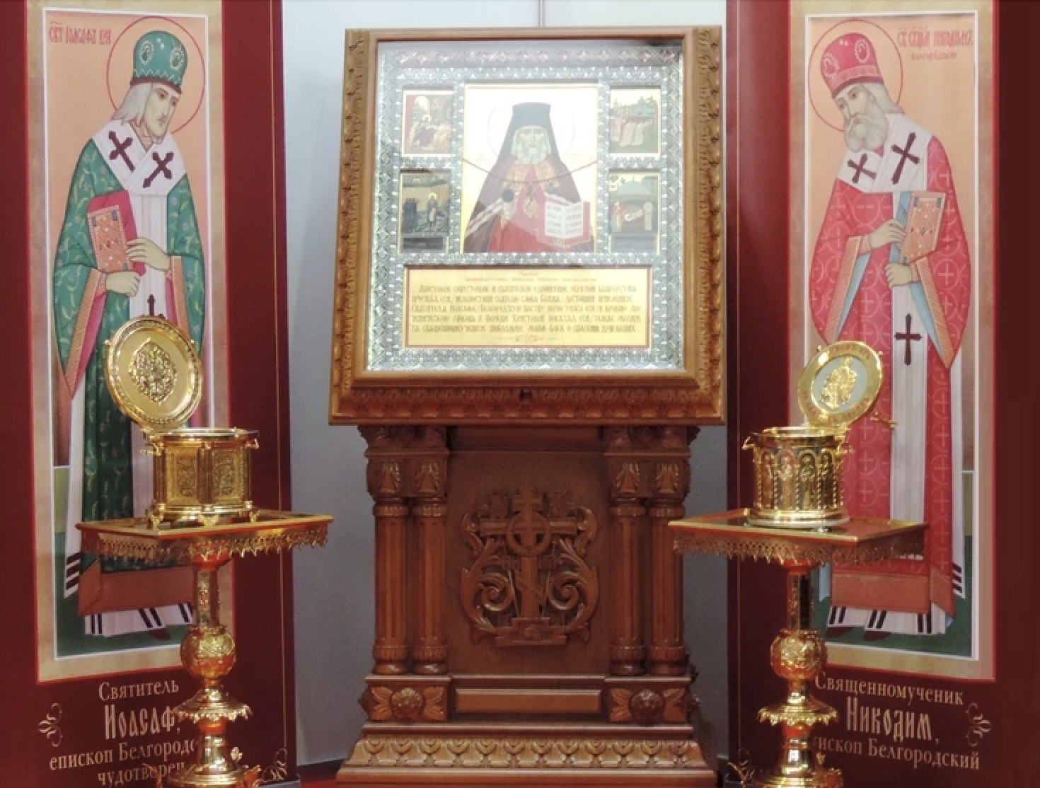 Отдельные витрины посвящены Чтимым Святыням. Здесь представлены: ковчежец с частицей мощей святителя Иоасафа, епископа Белгородского Чудотворца и ковчежец с частицей мощей священномученика