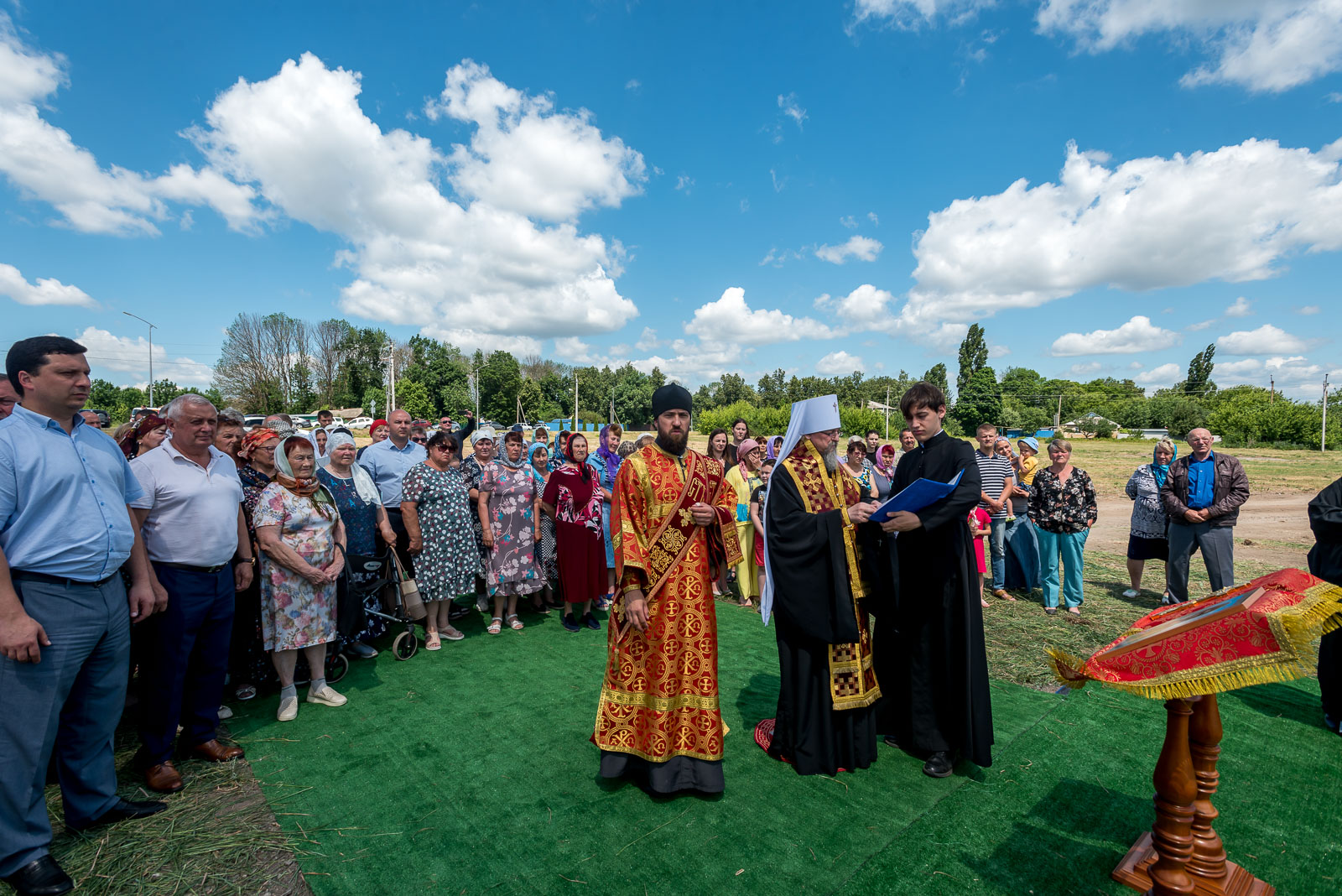 Члены Белгородского отделения ИППО Андрей Бедненко и Ирина Бедненко присутствовали при совершении митрополитом Белгородским и Старооскольским Иоанном освящения закладных камней в основании новых храмов в селах Новая Слободка и Новотроевка Корочанского района.