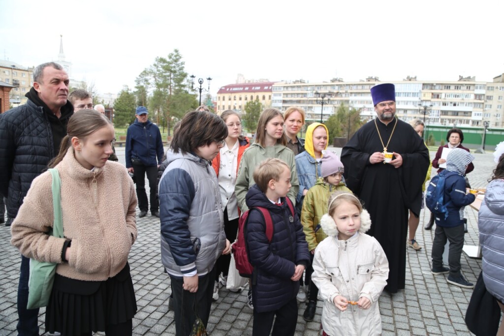 Интересным пунктом программы стала экскурсия по собору – детей и взрослых разделили на группы, и в сопровождении клириков собора и активистов Молодежного объединения «Соборяне» они смогли поближе познакомиться с возрожденной святыней – услышали ее историю, подробнее рассмотрели росписи, узнали их содержание и значение, побывали на колокольне.