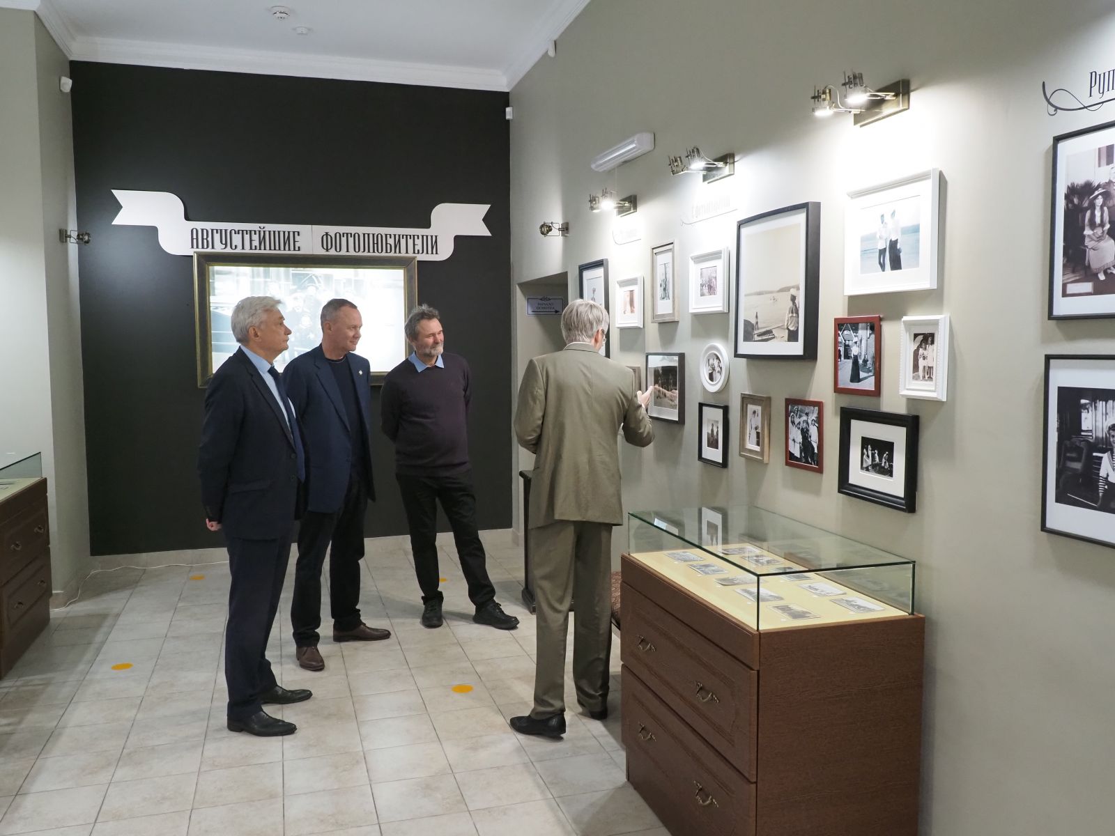 Специально для членов ИППО руководителем музея монастыря на Ганиной яме Владимиром Кузнецовым была проведена экскурсия по недавно открывшимся выставкам «Царская обитель через призму прошлого» и «Августейшие фотолюбители».