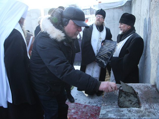Митрополит Екатеринбургский и Верхотурский Евгений предоставил действительным членам регионального отделения ИППО Владимиру Тумакову и Сергею Шитову почетное право заливки капсулы времени с письмом в основание храма.