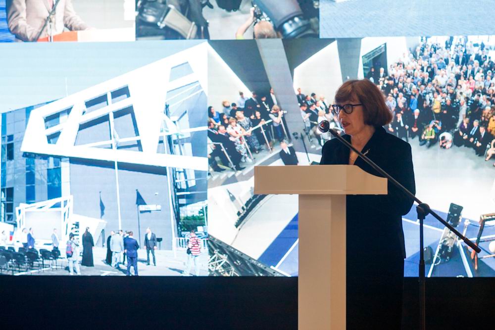 Выступая с ответным словом, руководитель мультимедийного парка Наталья Прошина поблагодарила всех выступающих за теплые слова и поздравления, отметив всех кто с момента открытия помогал и продолжает помогать проводить выставки в парке истории на самом высоком уровне. В частности, Наталья Прошина поблагодарила Екатеринбургское отделение ИППО за те собственные печатные издания, экземпляры которых привозят в исторический парк для подарков гостям и участникам мероприятий.