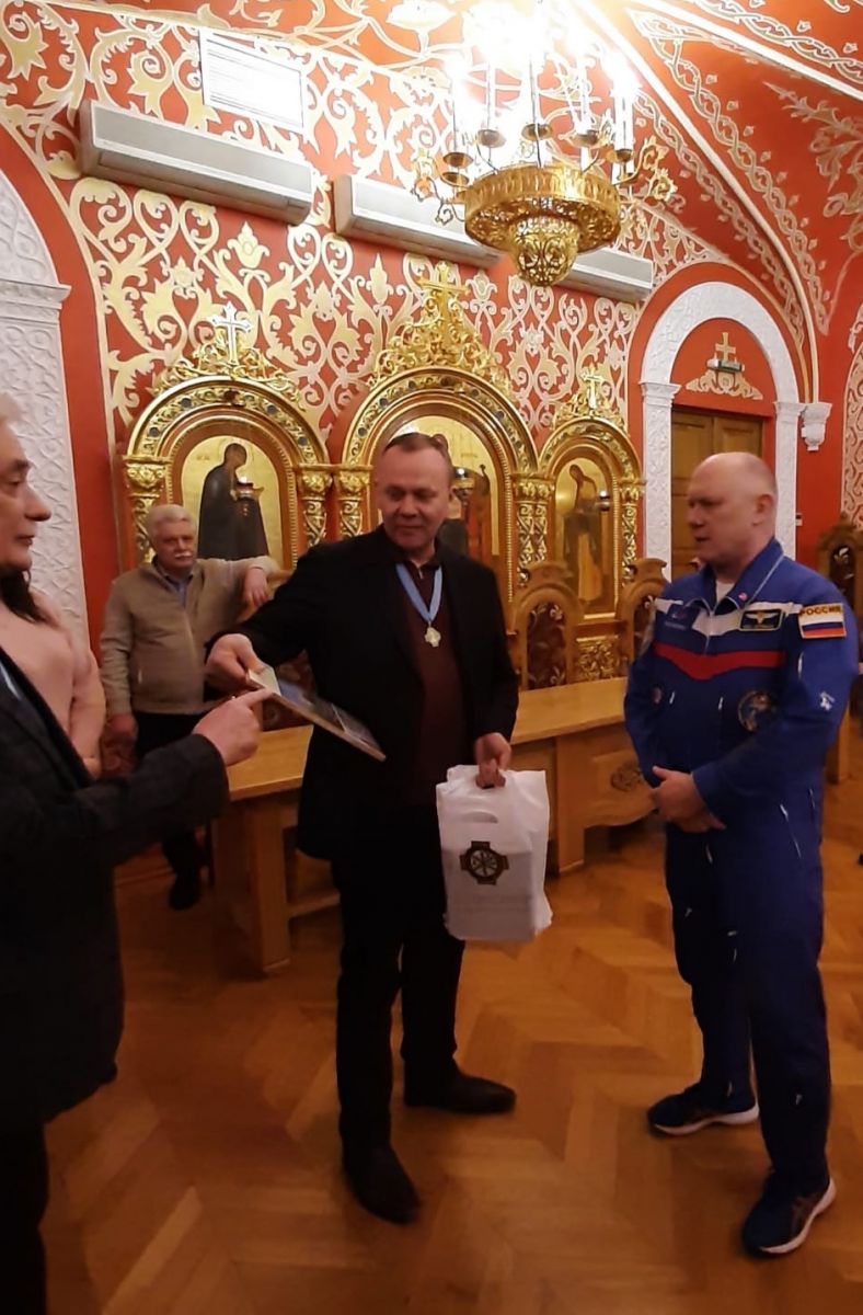 Во время своего предыдущего визита в Екатеринбург, Олег Артемьев взял на себя обязательство взять с собой на орбиту икону Святой Екатерины, которую он получил из рук правящего архиерея.