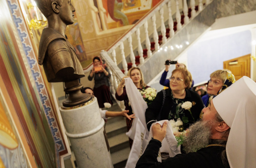 В открытии бюста страстотерпцу Цесаревичу Алексею приняли участие: заместитель Председателя ИППО Анна Громова, руководитель регионального отделения ИППО Инна Баталова, уполномоченный по правам человека Свердловской области Татьяна Мерзлякова, члены Екатеринбургского отделения ИППО.