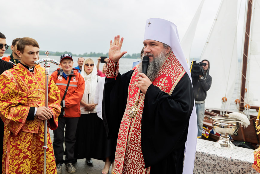 Перед чином освящения владыка митрополит пояснил, для чего необходимо освятить судно: «Пока корабль строят – это как будто документ пишут. Его пишут-пишут, но точка еще не поставлена. Достроили – точку поставили. Все написано. Но обязательно нужны подпись и печать. И тогда то, что было написано, становится документом. И также — с кораблем. Его строили, создавали, шили паруса, готовили флаги, мачты – большой труд. И вы приложили свою руку, вложили в это труд. Но в полной мере это еще корабль, как человек некрещеный. И сейчас мы помолимся, попросим у Бога благословения, чтобы Бог хранил всякого человека, кто на то судно сядет, кто на нем пойдет. Чтобы только добрые дела, добрые намерения реализовывались на этом судне».