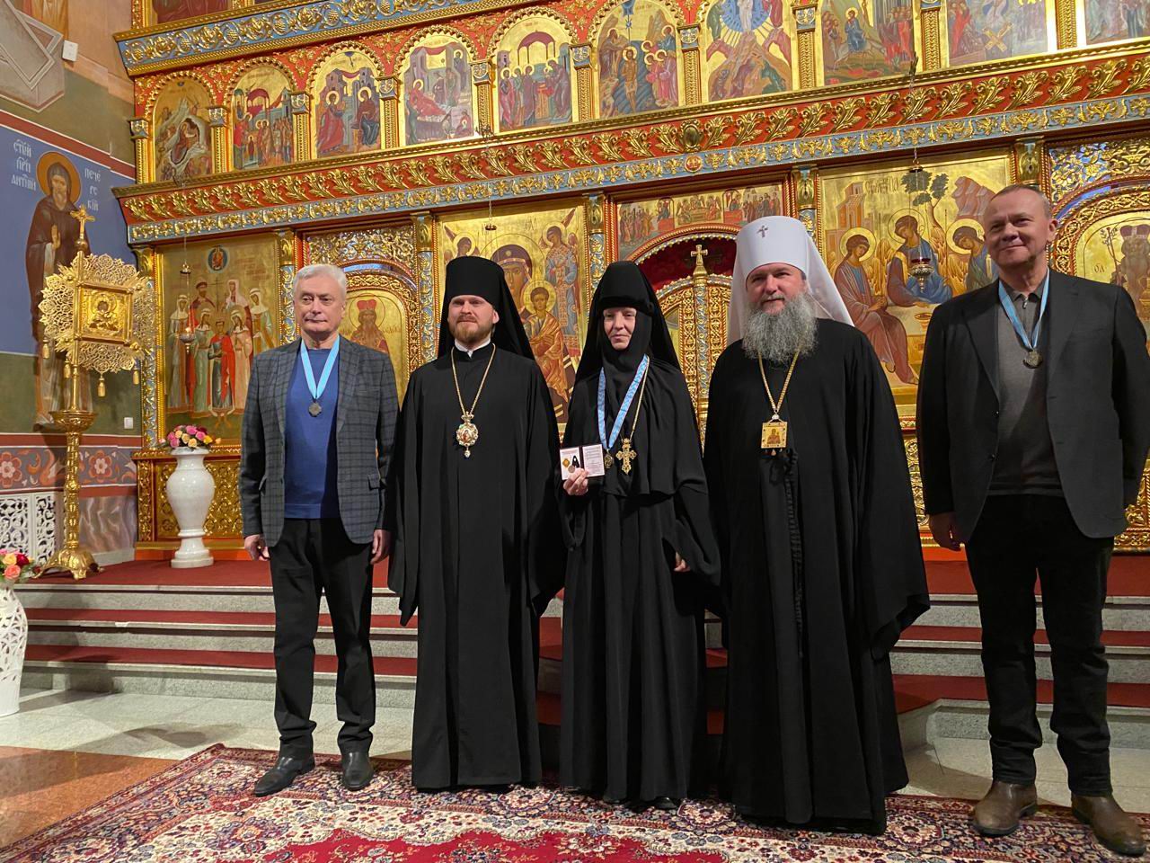 Знаки действительных членов ИППО получили: наместник монастыря Царственных страстотерпцев на Ганиной Яме игумен Мелитон (Зыбин) и благочинный монастыря иеромонах Иоанн (Неврюев), настоятельница верхотурского Свято-Покровского женского монастыря игумения Магдалина (Сулеменева), генеральный директор Областного краеведческого музея Александр Емельянов и директор музея Царской обители Владимир Кузнецов.
