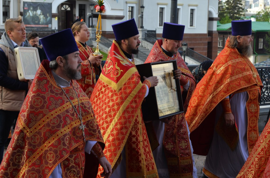 «6 мая сего года, в понедельник Светлой cедмицы, от стен Московского Кремля на Красной площади стартовал масштабный крестный ход, начало которому было положено еще в прошлом году. Тогда различные регионы страны посетил ковчег с частицей мощей святого великомученика Георгия Победоносца. Более 800 тысяч человек смогли принять участие в этом начинании и вознести горячие прошения небесному покровителю земли Российской и ее воинства о Русской Церкви, Отечестве и народе нашем. В нынешнем году главной святыней Всероссийского молебна станет недавно обретенный Казанский образ Божией Матери, который вплоть до Гражданской войны находился в одноименном храме на Красной площади в Москве, возведенном князем Дмитрием Пожарским после освобождения Первопрестольного града от иностранных интервентов. Настоящий крестный ход, который завершится к 4 ноября — дню чествования Казанской иконы, охватит более 60 российских городов, и, надеюсь, что как можно большее число людей сможет поклониться сему дивному образу Божией Матери.”