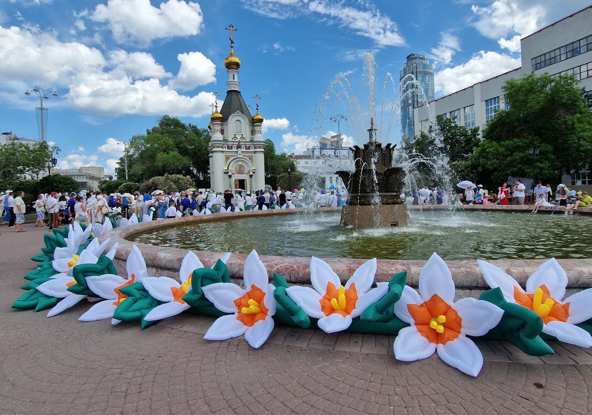После молебна участники праздника украсили площадь у часовни белыми цветами, изготовленными в приходах Екатеринбургской епархии и в образовательных учреждениях уральской столицы. От часовни до площадки у памятника отцам-основателям города Екатеринбурга Василию Татищеву и Вильгельму де Геннину прошел парад семьи с украшенными тематическими колясками, велосипедами и самокатами.