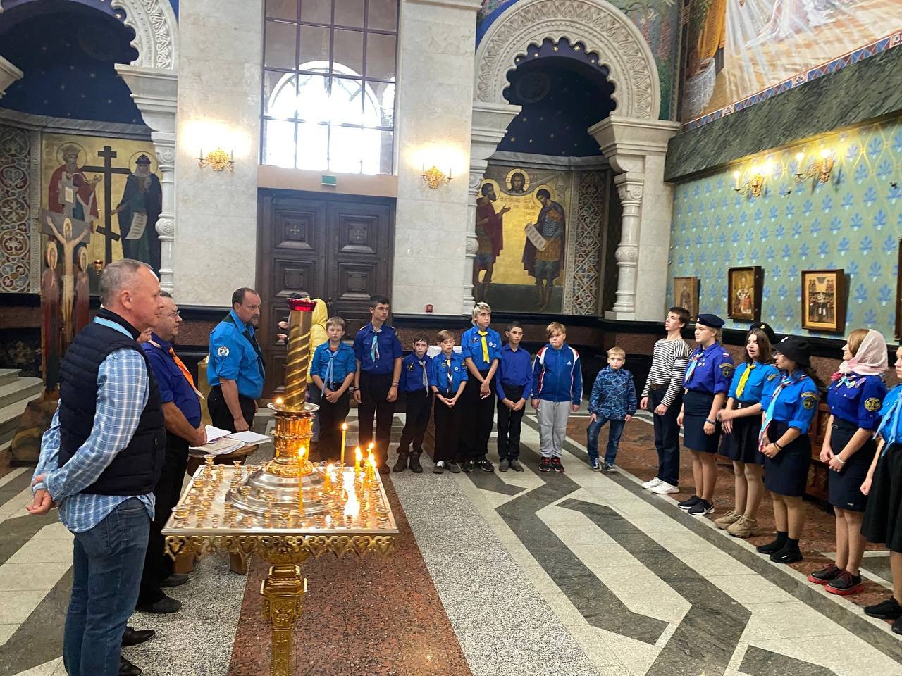 По окончании богослужения более 30 следопытов и члены Екатеринбургского отделения Императорского православного палестинского общества собрались на торжественном мероприятии, чтобы подвести итоги летних мероприятий и наметить планы на новый учебный год.