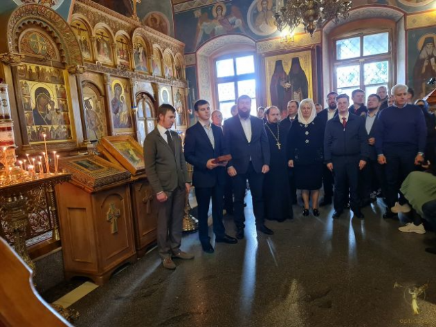 По завершении торжественного вручения был совершён благодарственный молебен и прочитана молитва к преподобному Моисею Оптинскому у раки с его мощами.