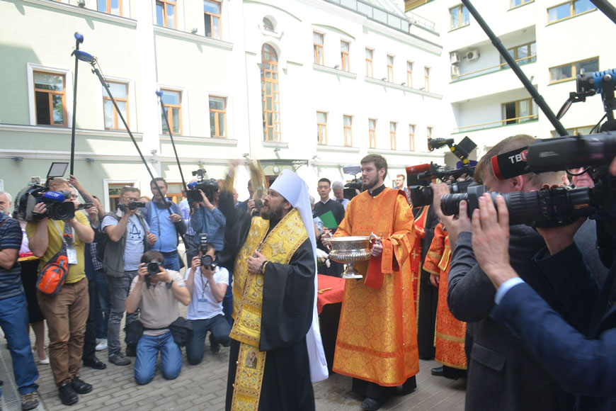 Перед началом церемонии председатель Отдела внешних церковных связей Московского Патриархата митрополит Волоколамский Иларион совершил освящение здания музея.