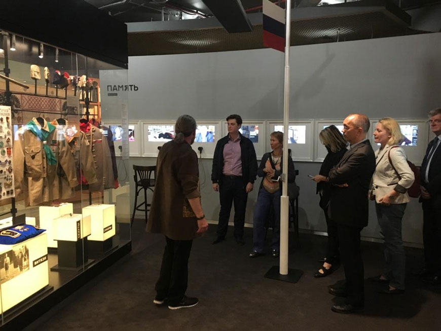 Для гостей была организована обзорная экскурсия по залам музея «Русская эмиграция. От изгнания к триумфу». После завершения экскурсии состоялась беседа участников встречи с Виктором Москвиным, директором Дома русского зарубежья, и Светланой Романовой, заведующей сектором отдела международного сотрудничества. В ходе беседы обсуждались инициативы совместных просветительских и культурных проектов, посвящённых истории русской эмиграции и богатейшему культурному наследию наших соотечественников за рубежом.