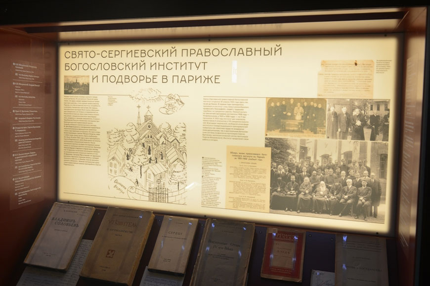 В расходящихся радиусами галереях отражена история Русской Православной Церкви, русской культуры, благотворительности и молодёжного движения за рубежом.