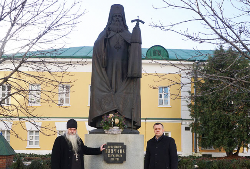 Александр Панин и архимандрит Тихон внимательно осмотрели территорию обители, возложили цветы к подножию памятника выдающемуся иерарху Русской Православной Церкви митрополиту Платону (Левшину).