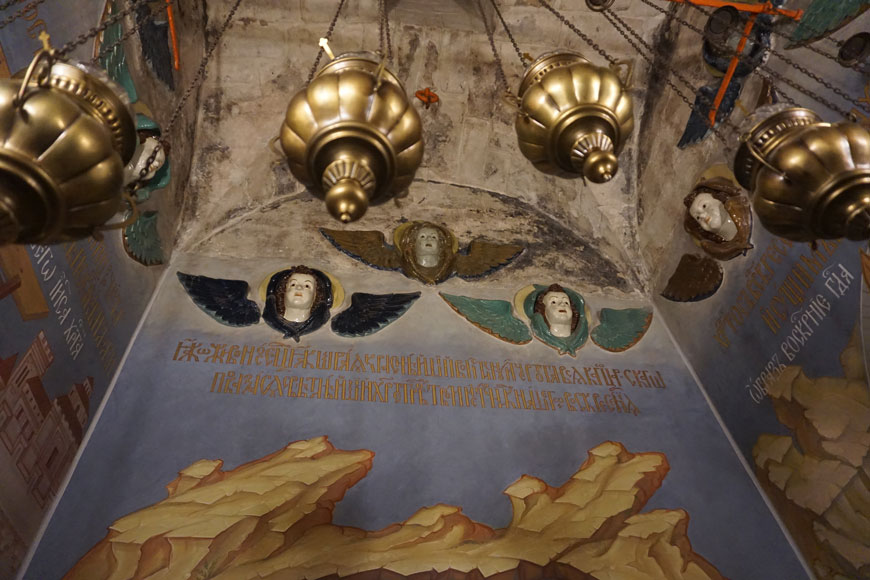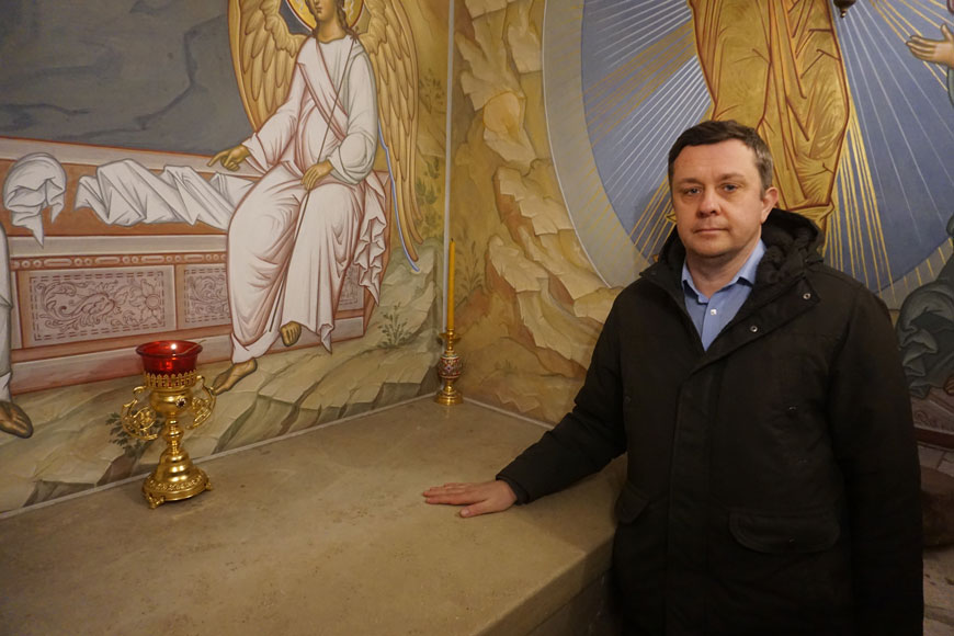 В храме Рождества Христова архимандрит Тихон, Александр Панин ознакомились с ходом реставрационных работ и впервые смогли побывать в полностью отреставрированном приделе Вифлеемских младенцев, где уже завершились все работы. У входа в придел члены ИППО трижды пропели «Вечная память» отцу архимандриту Андрею и фотографически зафиксировали все нижние приделы храма Рождества Христова.