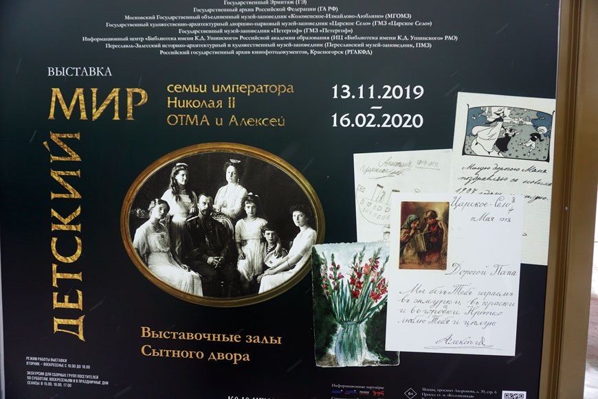 Эта выставка – совместный проект Государственного Эрмитажа, Московского Государственного объединённого музея-заповедника «Коломенское – Измайлово – Люблино» и Государственного архива Российской Федерации. Основная тема выставки – рассказ о повседневной жизни семьи последнего русского Императора Николая II. Но в первую очередь экспозиция посвящена его детям: Великим княжнам Ольге, Татьяне, Марии, Анастасии и их брату Цесаревичу Алексею. Хронологические рамки охватывают период от их рождения до юношества, при этом большое внимание уделено их семейному воспитанию и образованию. Последние месяцы пребывания Царской семьи в городе Екатеринбурге и её трагическая гибель не затрагиваются.