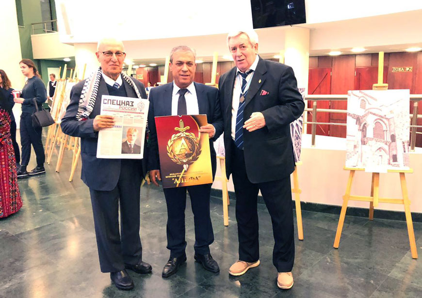Руководитель Московского областного отделения ИППО вручил памятные сувениры от имени Императорского Православного Палестинского Общества и Ассоциации ветеранов подразделения антитеррора «Альфа» Чрезвычайному и Полномочному Послу Палестины в Российской Федерации Абдель Хафезу Нофалю.