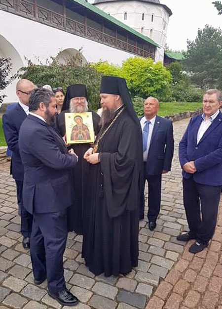 В завершение епископ Воскресенский Дионисий обратился к Великому князю и принёс в дар образ Божией Матери «Семистрельная», а взамен Георгий Михайлович преподнёс книги о Российском Императорском Доме.