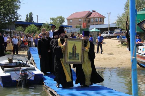 Из Калитвенской образ святого князя Владимира отправился по воде к паромной переправе станицы Багаевской.