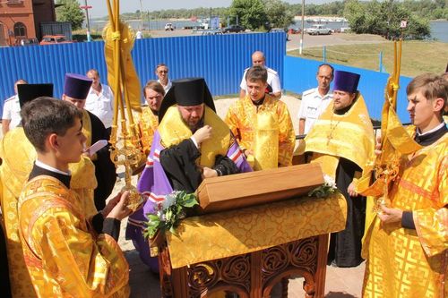 После молитвы святыня в сопровождении духовенства отправилась по реке Северский Донец на водном транспорте к набережной Каменск-Шахтинского. Время и маршрут следования были согласованы с департаментом по предупреждению и ликвидации чрезвычайных ситуаций Ростовской области и начальниками гидроузлов. Проплыть со святыней по воде удалось не только духовенству, но и всем желающим, имеющим водный транспорт. Судно со святым образом сопровождали байдарочники «Гребной базы» Каменска, моторные лодки, катамаран и судна спасателей.