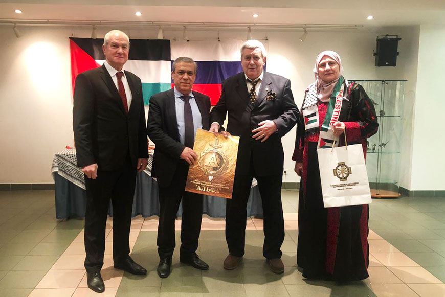 Абдель Хафиз Нофаль организовал приём почётных гостей. На приёме Почётный член ИППО профессор Юрий Смирнов вручил Чрезвычайному и Полномочному Послу Государства Палестина в Российской Федерации Абдель Хафизу Нофалю и его супруге памятные сувениры от имени Императорского Православного Палестинского Общества и Международной Ассоциации ветеранов подразделения антитеррора «Альфа».