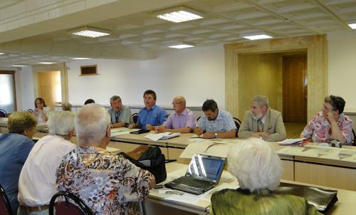 После заседания В. Н. Гороховатский пообщался с членами рабочей группы. С В. А. Бессоновым обсудили перспективы возрождения Сергиева скита. С журналисткой телекомпании Ника-ТВ, лауреатом Международных конкурсов Национальной премии «Культурное наследие», заслуженным работником культуры России И. В. Лысцевой переговорили о создании фильма к 120-летию Калужского отдела ИППО. С настоятелем Свято-Георгиевского Мещовского мужского монастыря о.Георгием (Евдачёвым) обсудили формат участия членов Калужского отделения в предстоящих торжественных мероприятиях 13 июля, посвящённых 400-летию династии Романовых и 775-летию города Мещовска.