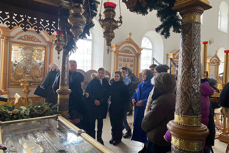 Поездка состоялась накануне Крещения, 18 января. Ребята познакомились с историей родного края. Калужская земля дала России трёх цариц – отсюда пошла женская линия рода Романовых, важно чтобы новые поколения это знали. Дочь мелкопоместного дворянина из Мещовска Евдокия Стрешнева стала спутницей жизни первого русского царя Михаила Фёдоровича Романова (в браке родилось десять детей). Супругой его сына, царя Алексея Михайловича (Тишайшего), была дочь боярина из Тарусского уезда Наталья Нарышкина. Царь-реформатор Пётр I также взял жену с Мещовской земли – из села Серебряно – Евдокию Лопухину.