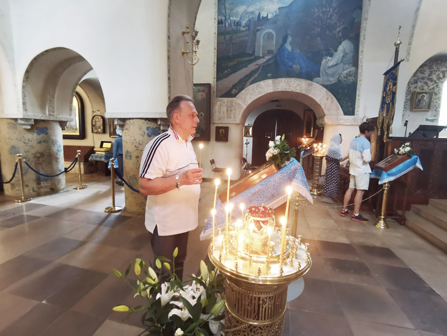 Члены Кипрского отделения Общества поставили свечи и поклонились у мощей Великой княгини Елизаветы Федоровны. Руководитель Кипрского отделения Общества Леонид Буланов передал в библиотеку Марфо-Мариинской обители книгу под редакцией Председателя ИППО Сергея Степашина «Путешествие игумена Даниила по Святой Земле», а также журналы «Наука и Религия».