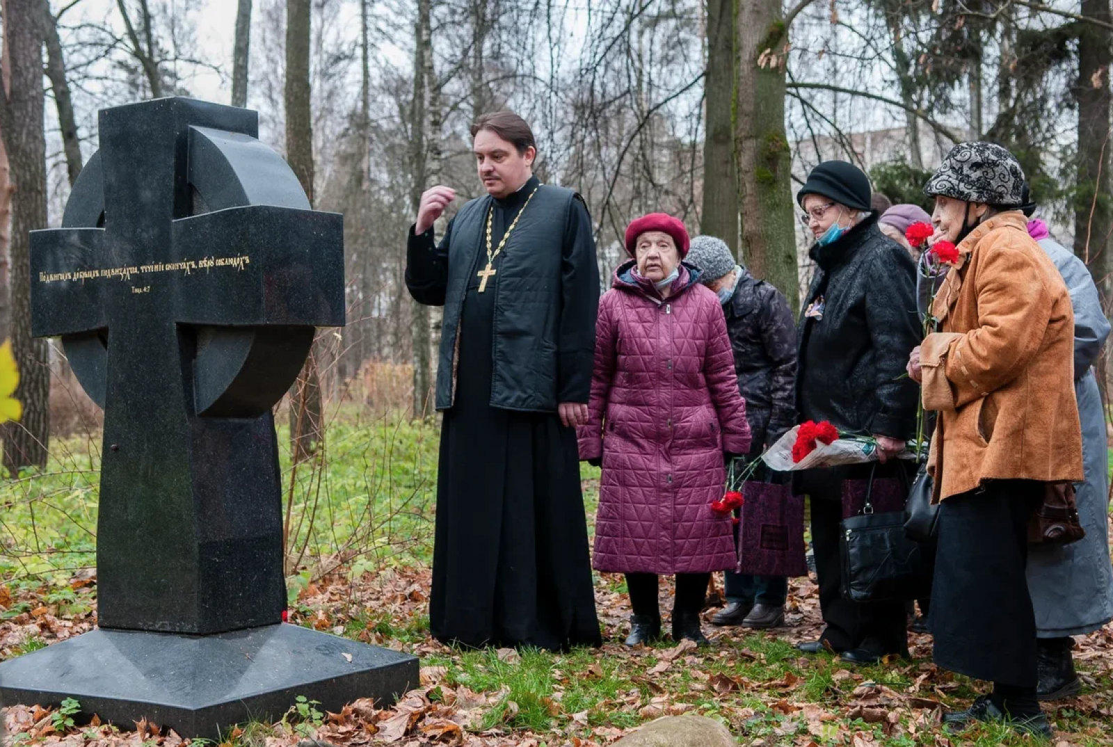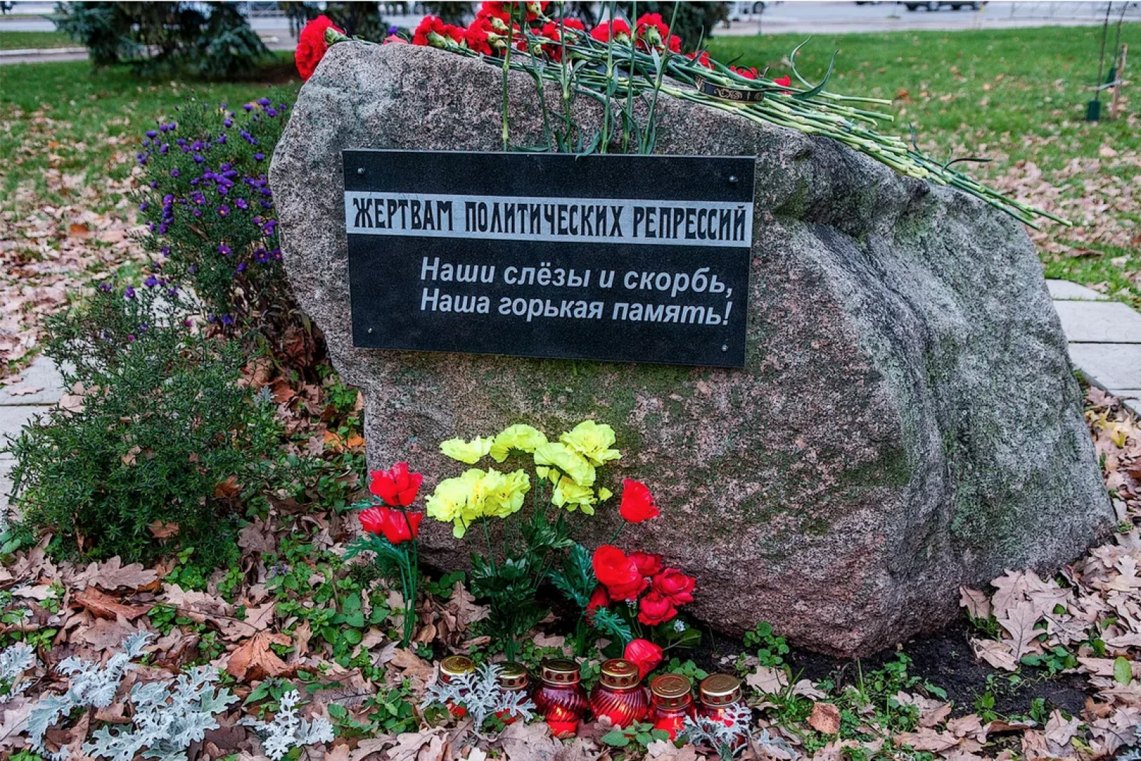 Затем, духовенство и участники мероприятия возложили цветы и поминальные лампады на памятный камень, посвященный жертвам политических репрессий, находящийся на Проспекте Мира.