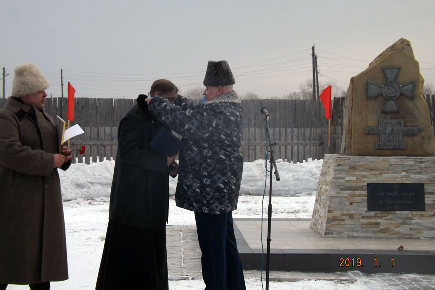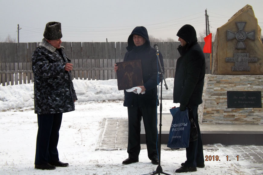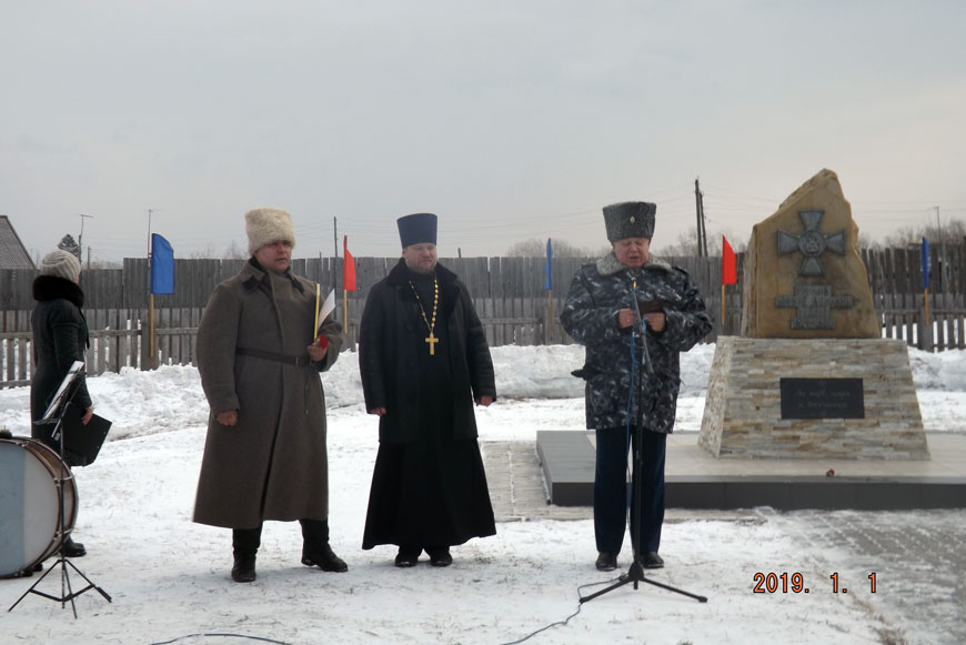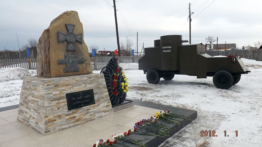 Выступил и руководитель регионального отделения Императорского Православного Палестинского Общества в Красноярском крае, председатель Красноярского губернского Дворянского Собрания, доктор исторических наук, полковник запаса Сергей Гонюхов: «Мне, внуку солдата Первой мировой войны, почётно участвовать в столь значимом мероприятии. Огромное спасибо Савенкову Александру Григорьевичу, который по старым чертежам собрал броневик Остин-Путиловец образца 1916 года и передал его в дар мемориальному комплексу, посвящённому участникам войны. Низкий поклон настоятелю Частоостровского Свято-Троицкого храма иерею Андрею Кручинкину – одному из главных инициаторов создания памятника».