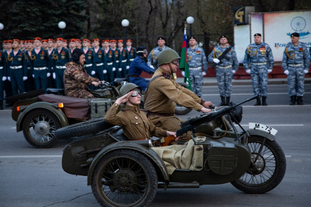 Вся техника шла своим ходом и олицетворяла память о тех далеких днях, когда советские солдаты подняли знамя Победы над рейхстагом.