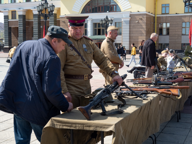 8 мая выставка прошла в другом городе Красноярского края – Железногорске. После выставки железногорцы увидели реконструкцию событий Сталинградской битвы.