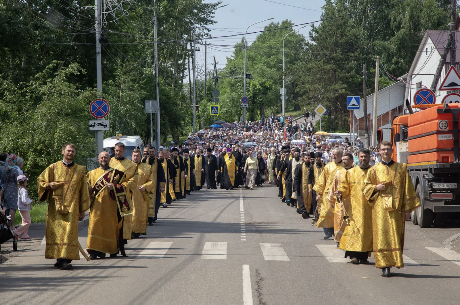 Участники крестного хода пронесли по улицам города икону Преображения Господня — покровительницу Красноярска.