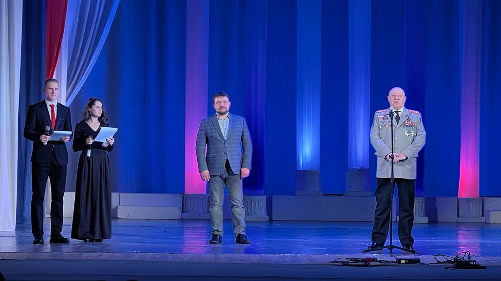 Затем слово было передано руководителю регионального отделения ИППО Сергею Гонюхову: «9 декабря в нашей стране с 2007 года отмечается памятная дата — День Героев Отечества. В этот день отдаётся дань памяти героическим предкам, а также чествуются ныне живущие Герои Советского Союза, Герои Российской Федерации, кавалеры ордена Славы и кавалеры ордена Святого Георгия. Праздник стал по истине общенациональным. В преддверие Дня героев Отечества говорить слова благодарности за воинскую честь, благородство и преданность профессии, ратные и трудовые подвиги, служение великим идеалам страны, передачу бесценного опыта гуманизма и истинного патриотизма. Мы благодарим не только собравшихся в зале, но и тех, кто сейчас выполняет свой патриотический долг на полях сражений СВО, или работает в заводских цехах!»