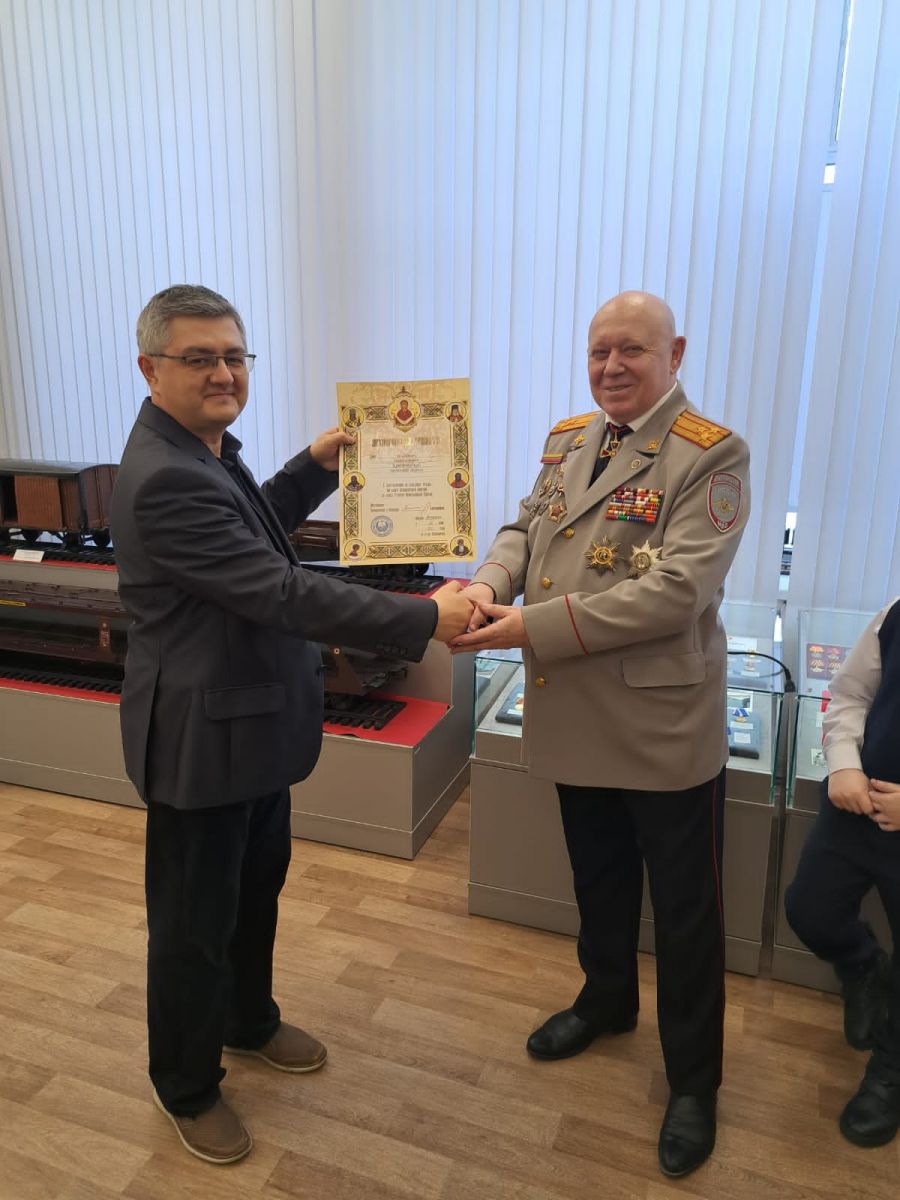 Завершая мероприятие, руководитель Красноярского отделения ИППО Сергей Гонюхов поблагодарил руководство музея за оказанное содействие и вручил начальнику Музея истории Красноярской железной дороги Вячеславу Белову архиерейскую грамоту от Митрополита Красноярского и Ачинского Пантелеимона, председателя попечительского Совета регионального отделения ИППО в Красноярском крае.