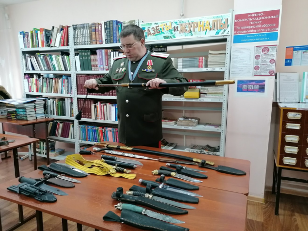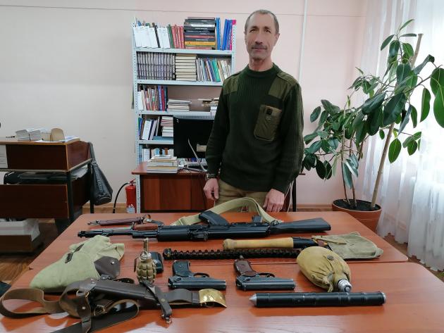 В конце мероприятия участники ознакомились с коллекцией оружия музея Ачинского филиала КРО СТПВ "Пограничник" экскурсию провёл ветеран боевых действий в Афганистане Михаил Дубина.