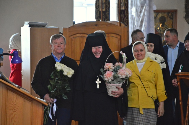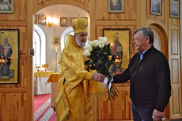 По окончании торжественной поздравительной церемонии поздравляющие преподнесли Его Преосвященству букеты цветов.