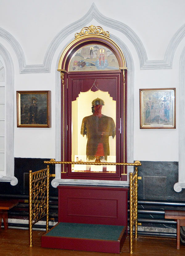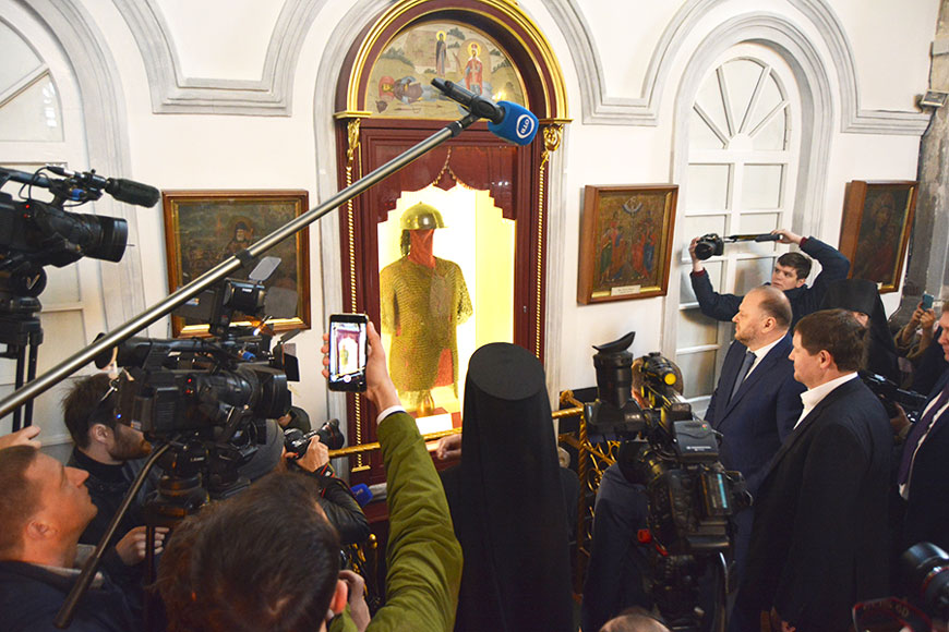 Этому событию предшествовала долгая история, так как после кончины преподобного Далмата Исетского шлем и кольчуга хранились на его гробнице в усыпальнице при храме в честь иконы Божией Матери «Всех скорбящих Радость». Сохранились дореволюционные фотографии этих реликвий, в том числе цветной снимок, сделанный побывавшим в Далматовском монастыре в 1912 году известным русским фотографом Прокудиным-Горским. После закрытия монастыря в 1930-е годы реликвии были переданы в Свердловский областной краеведческий музей.