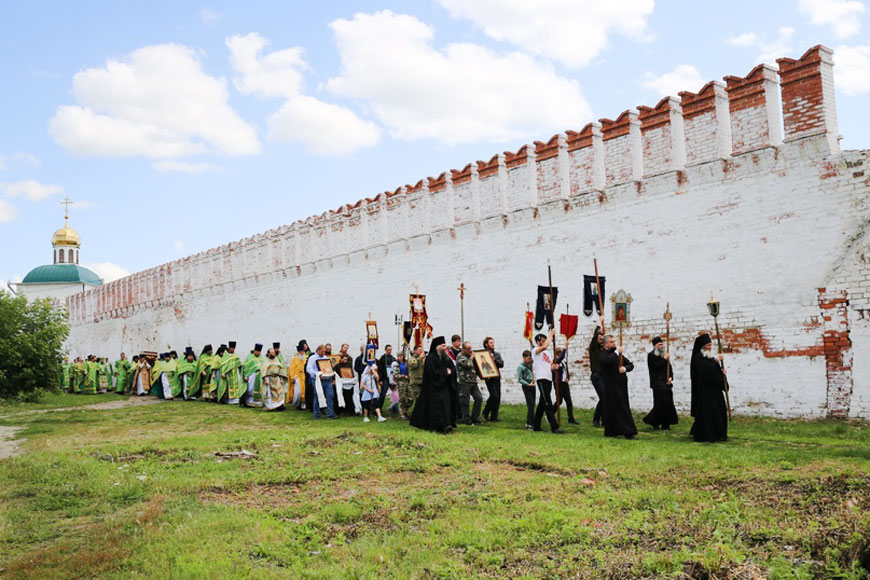 По окончании литургии состоялся крестный ход с мощами преподобного Далмата Исетского вокруг стен обители. Во время крестного хода был освящён поклонный крест, установленный за алтарём Успенского собора на месте уничтоженного в годы богоборчества монастырского кладбища в память погребённых на этом месте православных христиан по инициативе членов Курганского отделения ИППО. Молитву на освящение надгробного креста прочитал митрополит Курганский и Белозерский Иосиф.
