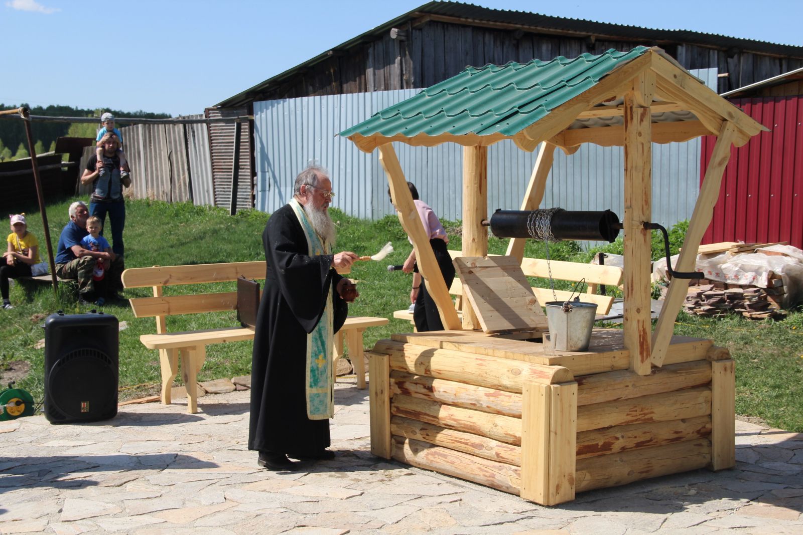 В заключение мероприятия протоиерей Владимир Карелин провёл чин освящения колодца, а присутствующие возложили цветы к стеле и попили той самой воды из колодца.