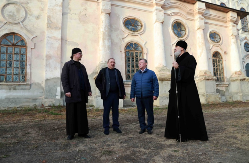 По окончании совещания все его участники проследовали на территорию собора в честь Преображения Господня г. Шадринска, где их встретили настоятель Спасо-Преображенского храма секретарь Шадринской епархии иерей Константин Стерхов, член Курганского отделения ИППО и представитель подрядной организации – директор ООО «СтройГазСервис» Леонид Хмаров.