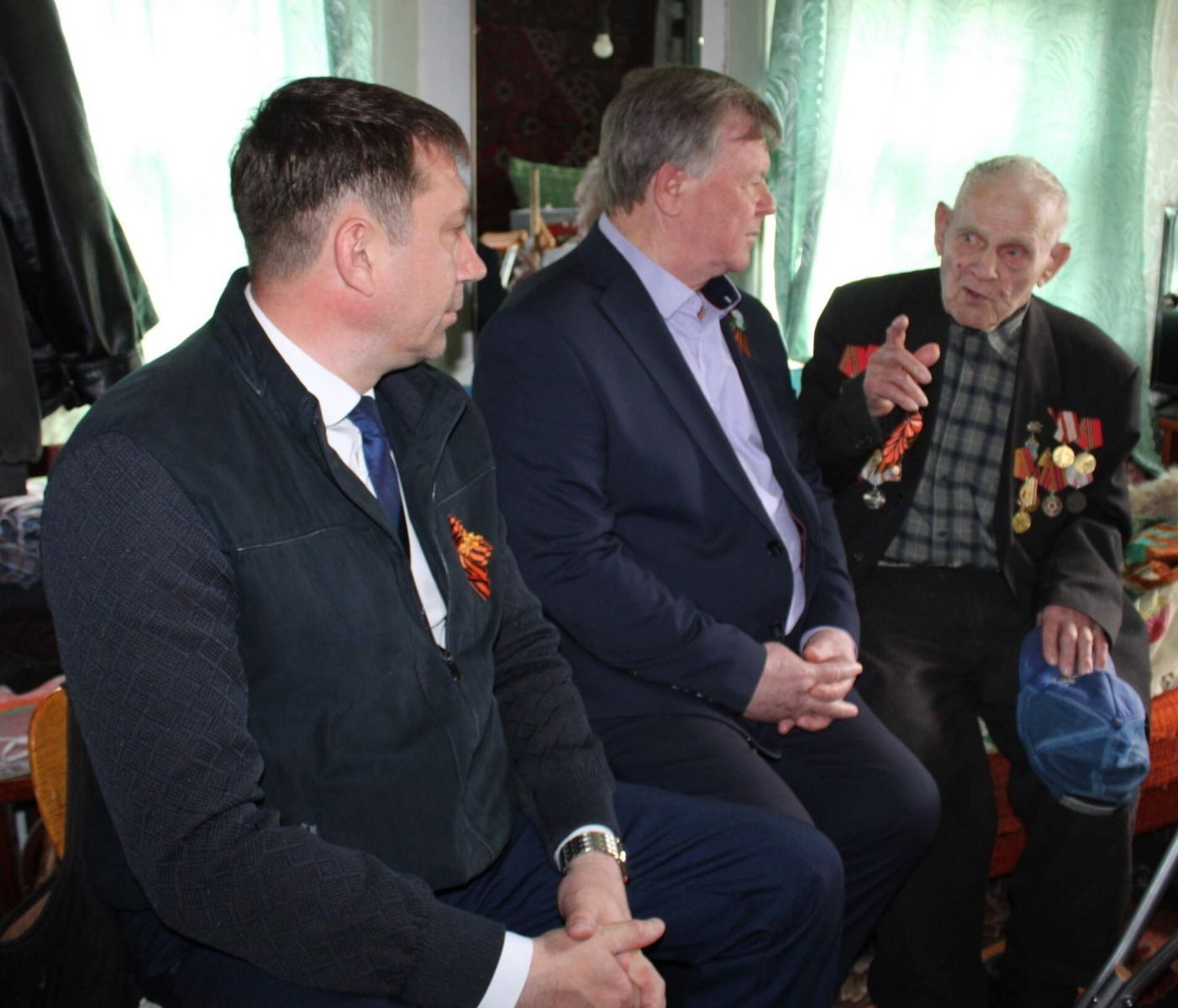 Затем участники торжественного мероприятия отправились с цветами и подарками поздравлять ветерана Великой отечественной войны Ивана Язовских. Ветерану, почётному гражданину Шадринского округа 101 год, но он и в таком возрасте старается быть максимально самостоятельным, живо интересуется всем происходящим вокруг и разговоры всегда ведёт не о себе самом, а о том, что его волнует в жизни села и округа. Гости пожелали Ивану Павловичу здоровья, благополучия и бодрости духа.