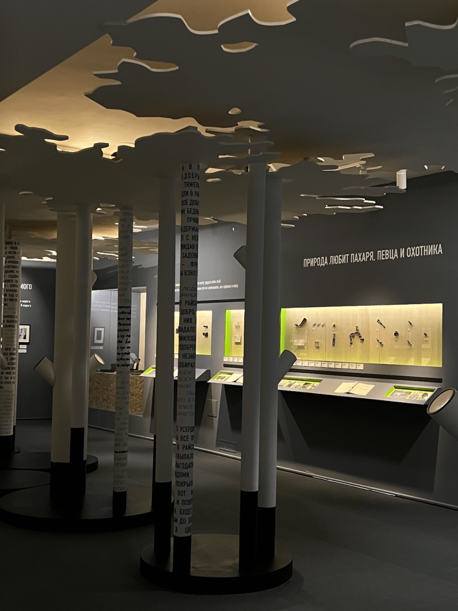 Выставка предоставляет уникальную возможность увидеть подлинные дневники Пришвина и личные вещи писателя: письменный стол, печатную машинку, фотоаппарат, охотничьи принадлежности, оптические инструменты для наблюдения за природой и др. На выставке также представлены книги из библиотеки Пришвина и обширная коллекция фоторабот.