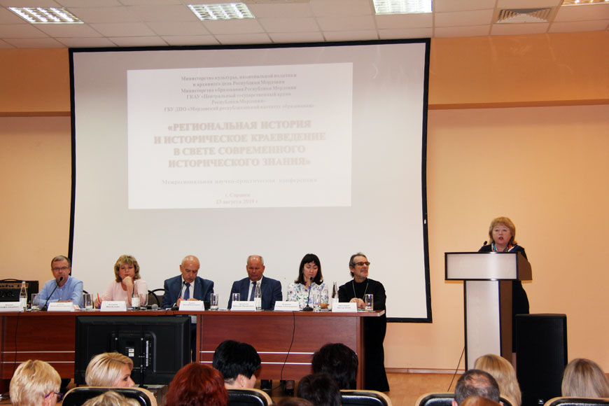 Среди выступивших с докладами и приветствиями были Николай Арсентьев, директор Историко-социологического института ФБГОУ ВО «МГУ им. Н. П. Огарёва», член-корреспондент РАН; Галина Куршева, директор НИИ гуманитарных наук при правительстве РМ, доктор исторических наук, профессор; Надия Азисова, проректор по учебно-методической работе ГБУ ДПО «Мордовский республиканский институт образования», кандидат социологических наук, доцент. Саранскую и Мордовскую епархии представлял председатель епархиального отдела по культуре протоиерей Виктор Зимин.