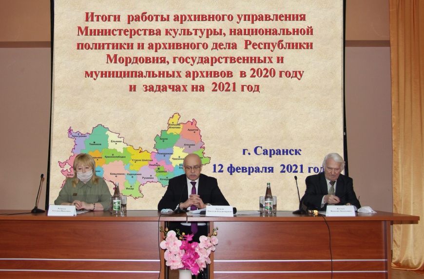 В ходе заседания были подведены итоги работы архивного управления Министерства культуры, национальной политики и архивного дела Республики Мордовия, государственных и муниципальных архивов в 2020 году и озвучены задачи на 2021 год. С основным докладом выступил Николай Бычков.