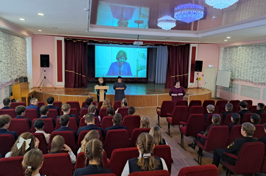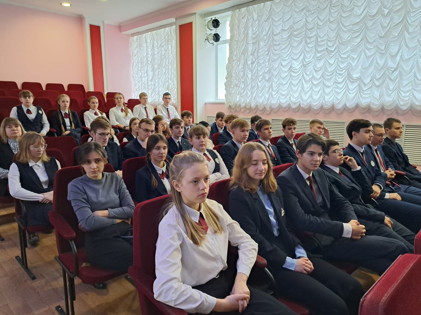 В актовый зал лицея на урок были приглашены учащиеся старших классов вместе с классными руководителями.