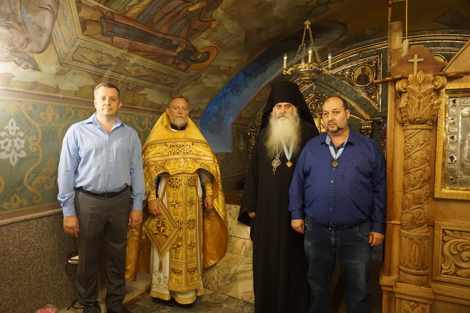 Архимандрит Тихон ознакомил присутствующих членов ИППО с историей храма и его святынь, после чего все спустились в пещерный храм во имя св. прп. Иоасафа, царевича Индийского, где поклонились гробнице с мощами св. прп. схимонаха Иоасафа Печерского, Нижегородского Чудотворца. Настоятель храма протоиерей Евгений Худин помазал присутствующих св. елеем.