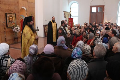 Перед молебном настоятель Николо-Берлюковского монастыря игумен Евмений выразил большую благодарность Сергею Николаевичу Кришталю за его подвижнический труд и желание потрудиться ради святых Царственных Страстотерпцев. Игумен Евмений призвал верующих как можно чаще молитвенно обращаться к святым Царственным Страстотерпцам, стараться в своей семейной жизни подражать им.