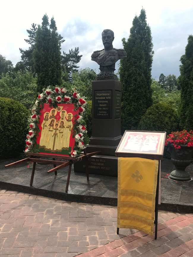 Перед иконой насельник обители иеромонах Тимофей (Дьяконов) отслужил молебен, на который собрались прихожане, паломники, братия и гости монастыря, а также члены Московского областного отделения ИППО. По благословению настоятеля Николо-Берлюковского монастыря, члена Совета Московского областного отделения ИППО, благочинного монастырей Московской епархии игумена Евмения (Лагутина) торжественный молебен святым Царственным страстотерпцам состоялся на Романовской Аллее Славы у памятника Государю Императору Николаю II.