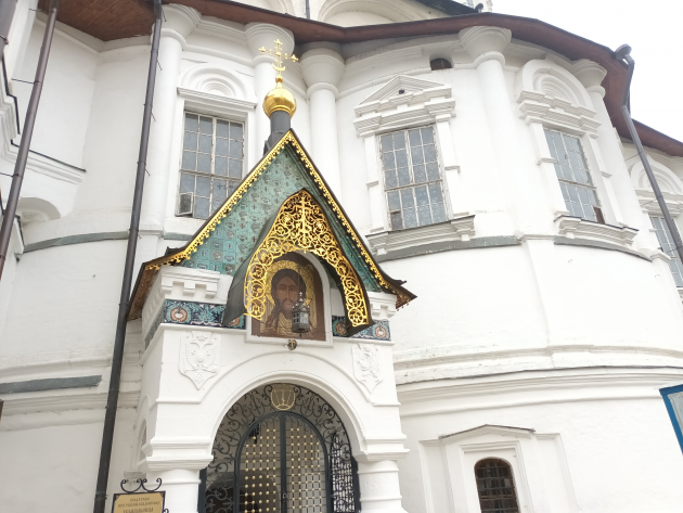 По благословению наместника обители митрополита Воскресенского Дионисия для представителей ИППО была проведена интересная экскурсия, в ходе которой состоялось посещение надвратного храма в честь преподобного Сергия Радонежского.